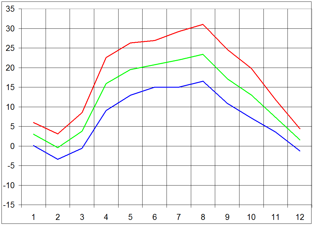 Amplituda 7 °C a vice: 244 dni