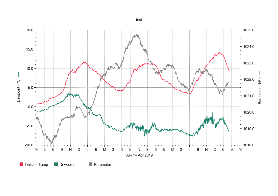 Minimální/maximální tlak 13.4.: 1019,7 hPa /1021,2 hPa