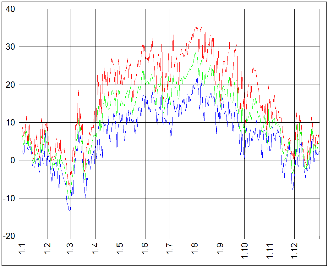Amplituda 1 °C a vice: 365 dni