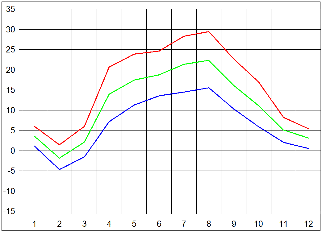 Amplituda 7 °C a vice: 244 dni