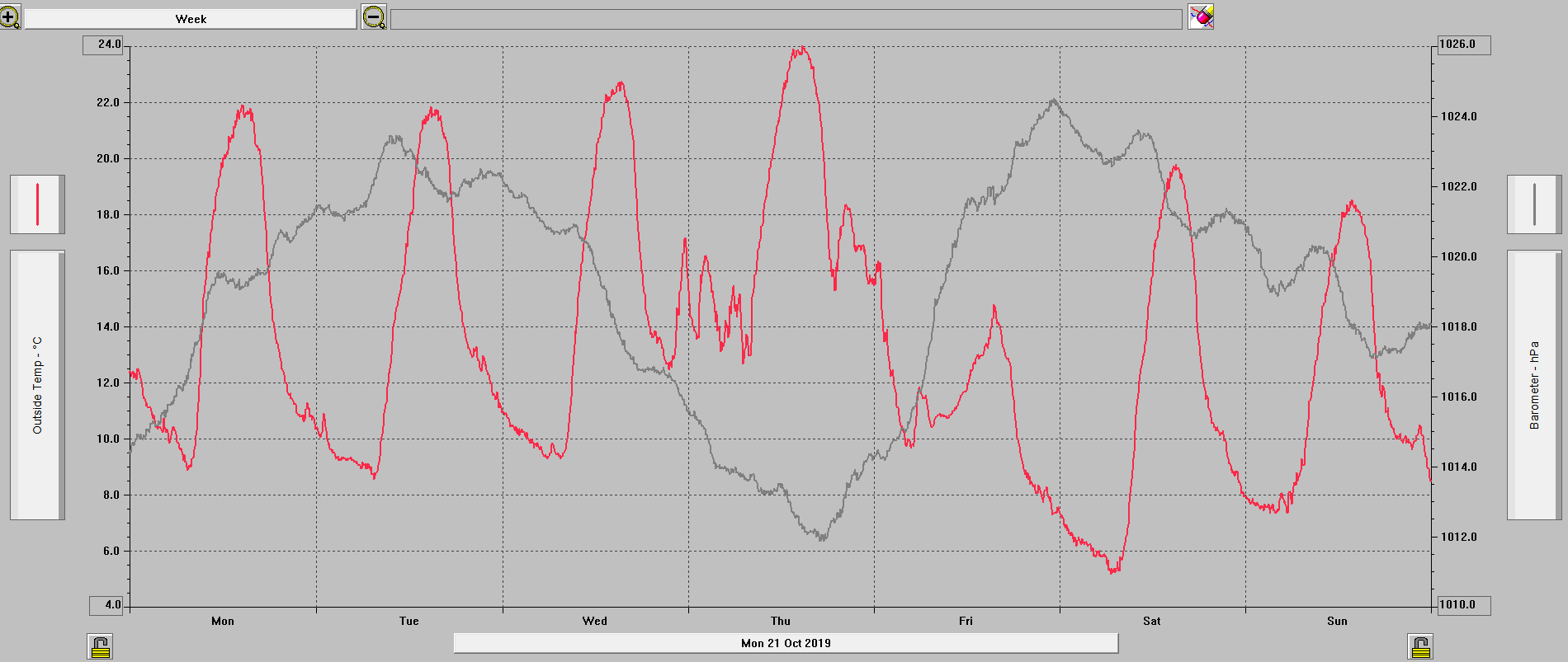 Minimální/maximální tlak 24.10.: 1012,9 hPa /1016,4 hPa