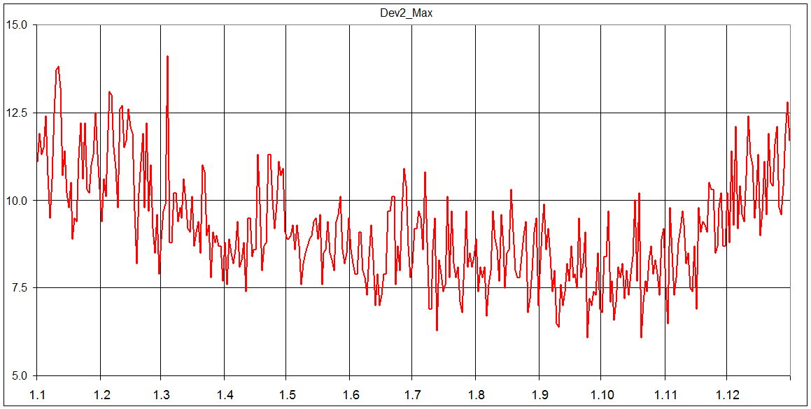 Hodnoty jsou za cele obdobi 1775-2004, pro kazdy den v roce. Pro 29.02. bylo dat mene. Bash pocita z ceymi cisly, tak desetina carka byla odstranena a hodnoty zadavany jako cela cisla (z +26.9 stupne byl vstup 269, z -27.6 par -276 a pod.). Vypocet trva 2-5 dni podle sily CPU.