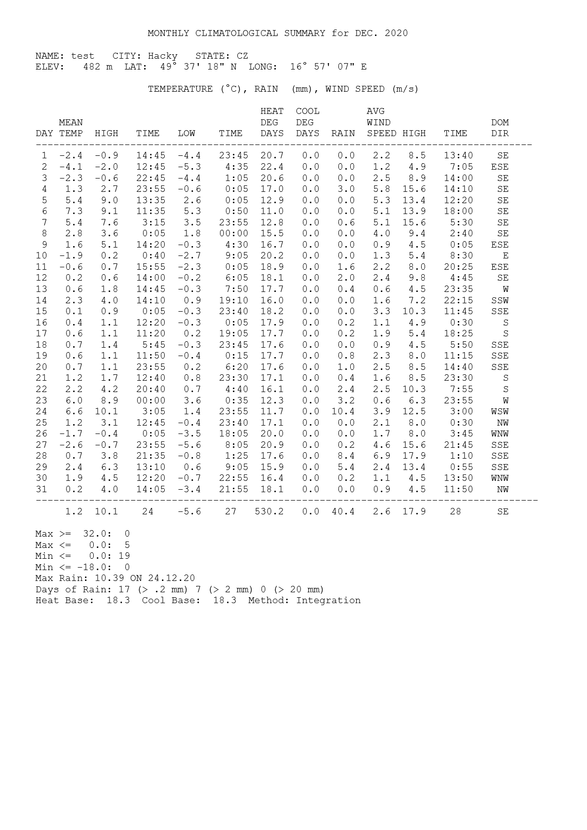 TommyAst píše: ↑09 pro 2020, 16:44 Mesicni prehled stanic Ogimet SYNOP v CR a par stanic v Evrope Prosinec 2020 (31 dni 01-31.12.2020 23 UTC):