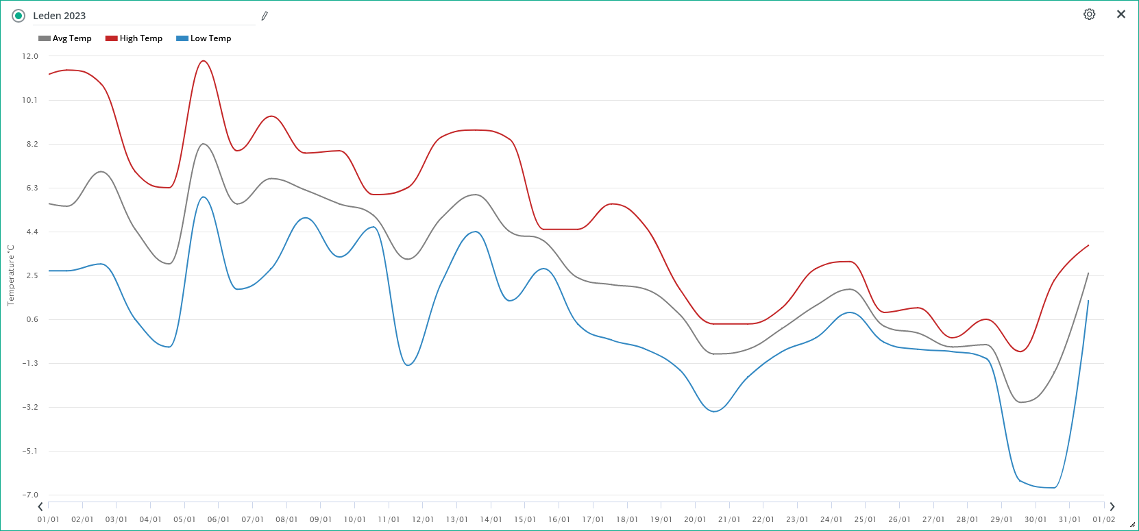- nejchladnějším dnem byl 29.1. s průměrnou denní teplotou - 2,63°C