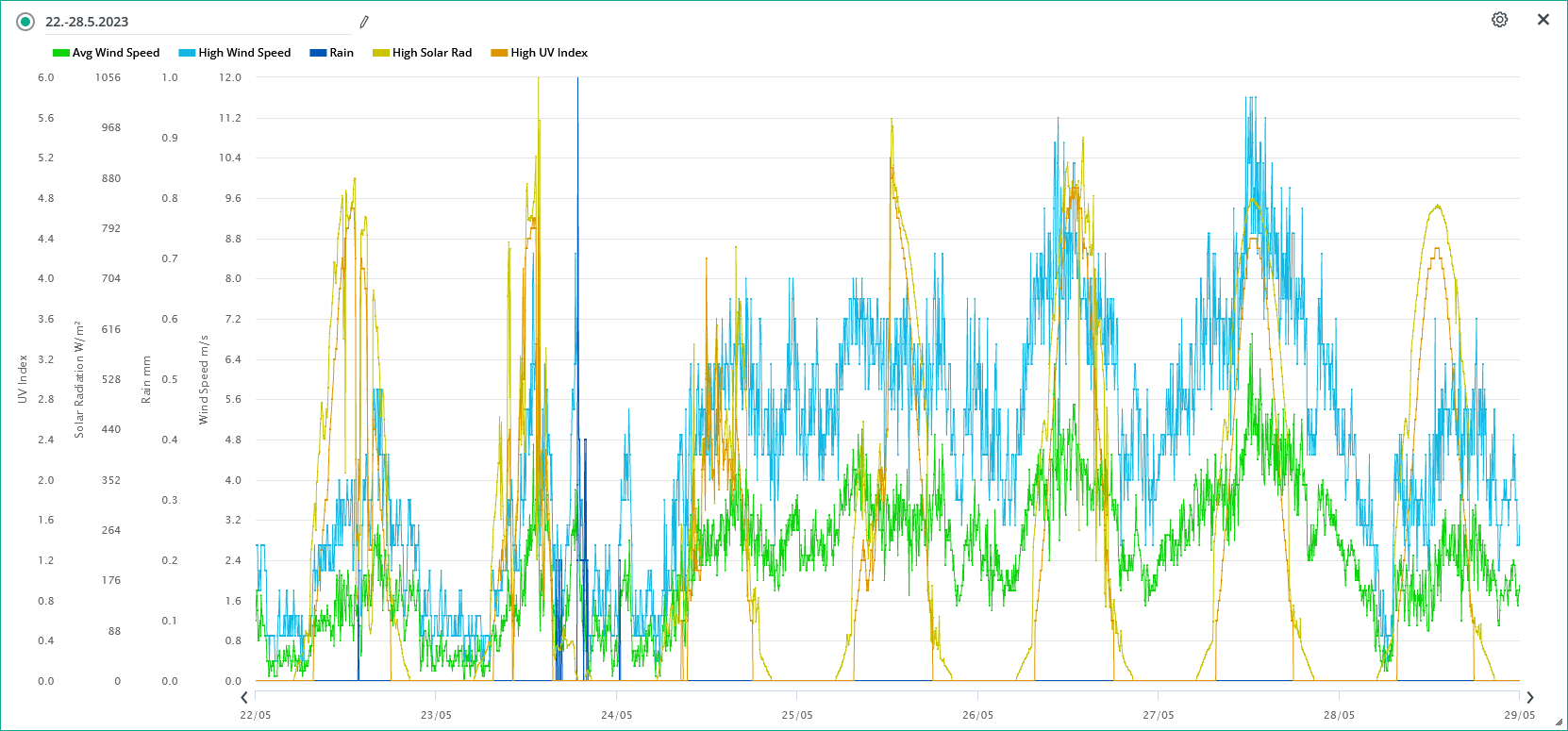 Nejvyšší hodnota solární radiace dnes: 1062 W/m2 (13:05)