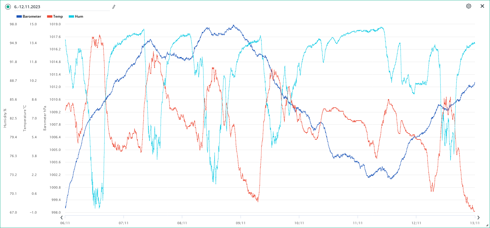 Minimální/maximální tlak 12.11.: 1006,5 hPa /1012,5 hPa