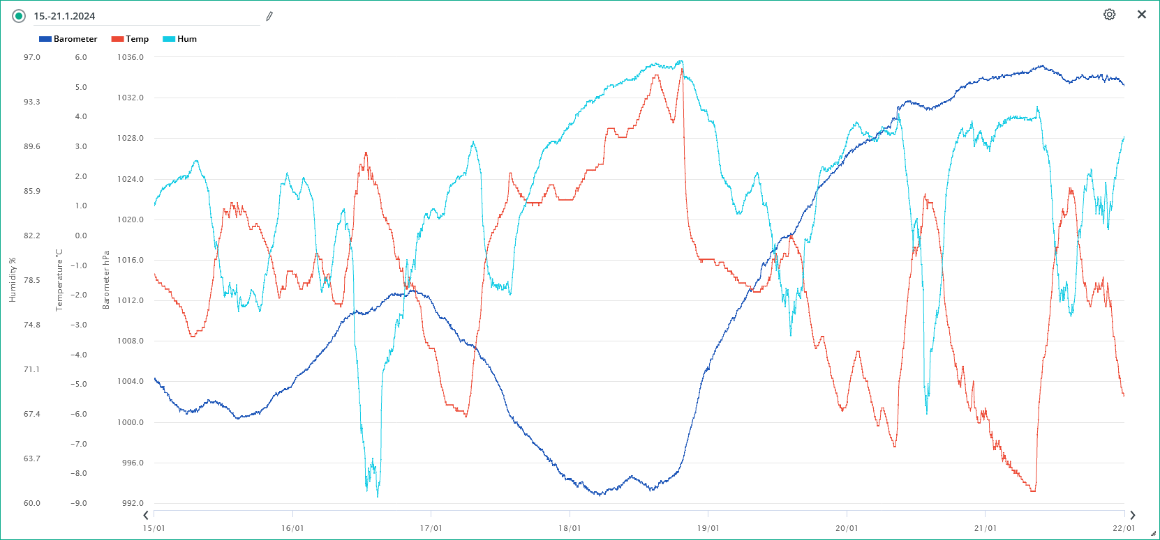 Minimální/maximální tlak 22.1.: 1019,6 hPa /1031,5 hPa