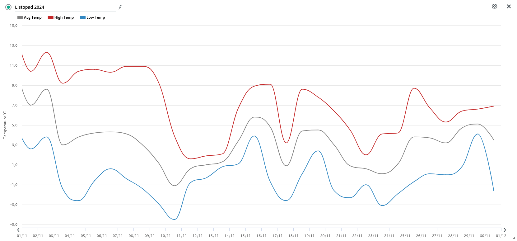 - absolutně nejnižší teplota byla dosažena dne 23.11. - 5,2°C v 7:20 SEČ