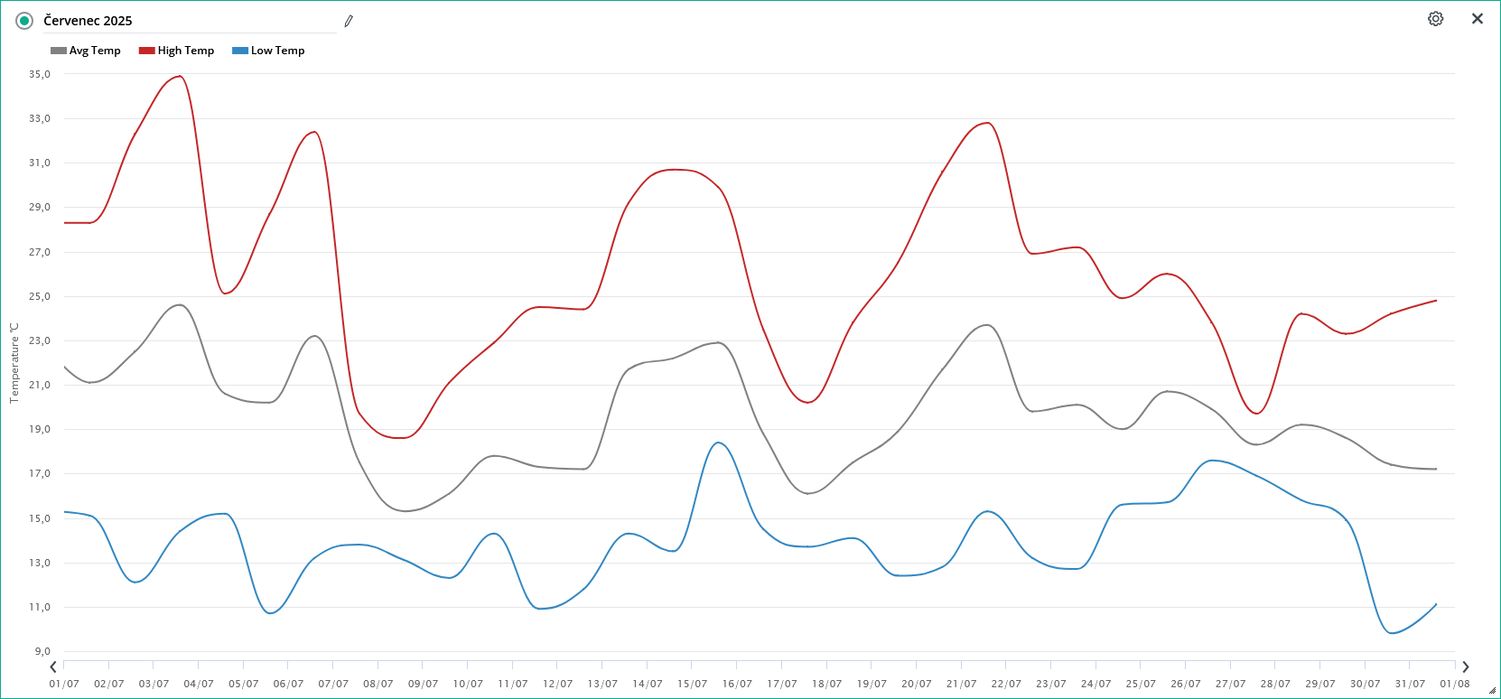 - nejchladnějším dnem byl 8.7. s průměrnou denní teplotou + 13,48°C