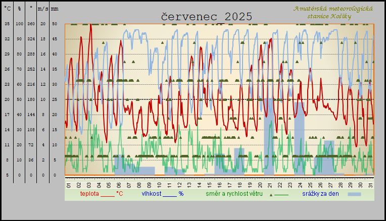 Shrnutí počasí za Košíky ,,červenec 2025“ Měsíc jako celek na tomto sledovaném místě a za toto období vyšel : teplotně podprůměrný a srážkově nadprůměrný