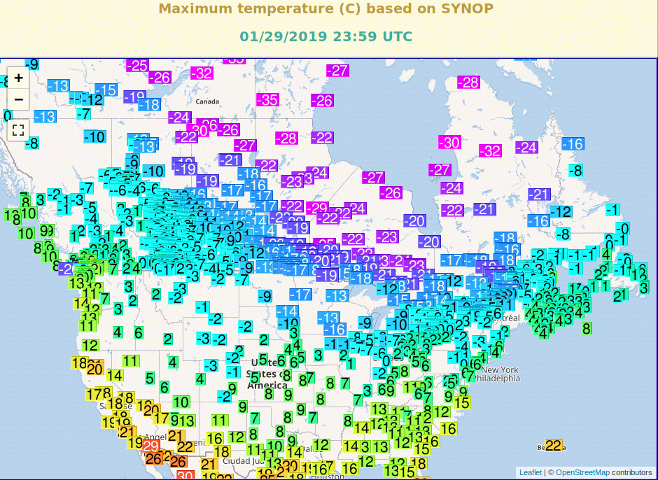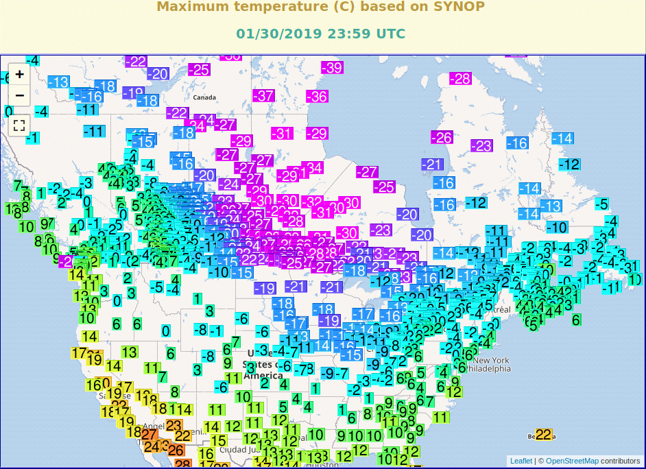 Zvlastni oblast okolo Vancouver, na jiho-zapade Kanady. Na vetsine stanic jsou tam teploty pod nulou, ale dve stanice - Tofino Airport a Namaimo airport hlasi az super-arkticke dny s Tmax pod -20 a Tmin i -30. Tofino airport ma byt na zapadnim pobrezi dokonce a s minimem -37. Vsechny ostatni stanice hlasi relativne teplo, jako vzdy v teto oblasti.