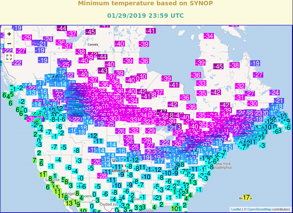 Ochlazovani vetrem snizuje teplotu az na -66 F, tedy -54 C podle mereni v USA. V Kanade to je na kekterych mistech jeste vic.