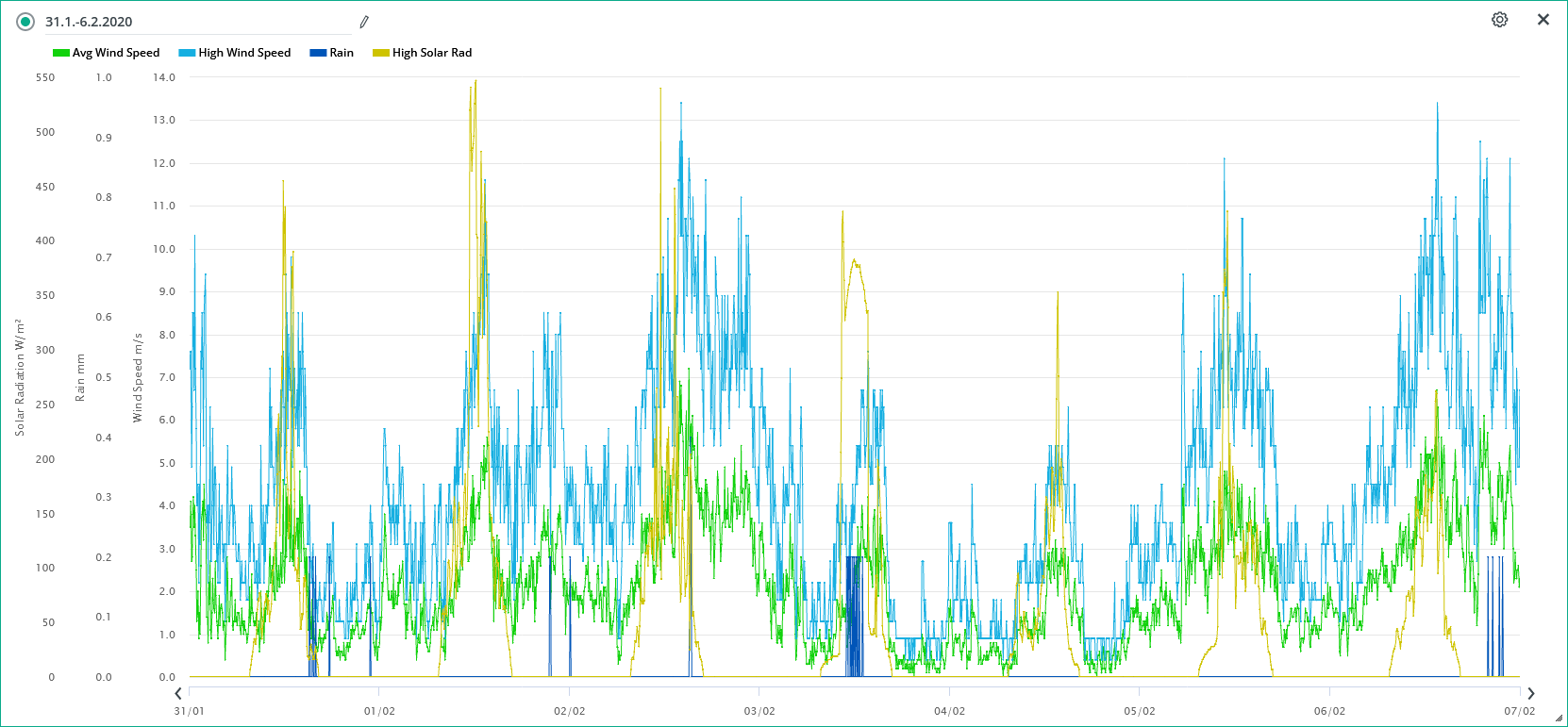 Včerejší průměr rychlosti větru: