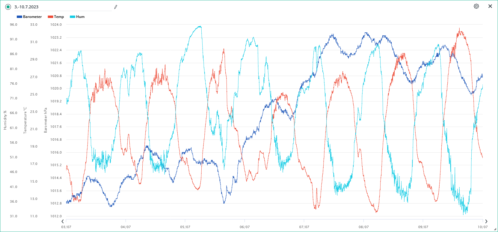 Minimální/maximální tlak 11.7.: 1013,2 hPa /1018,2 hPa