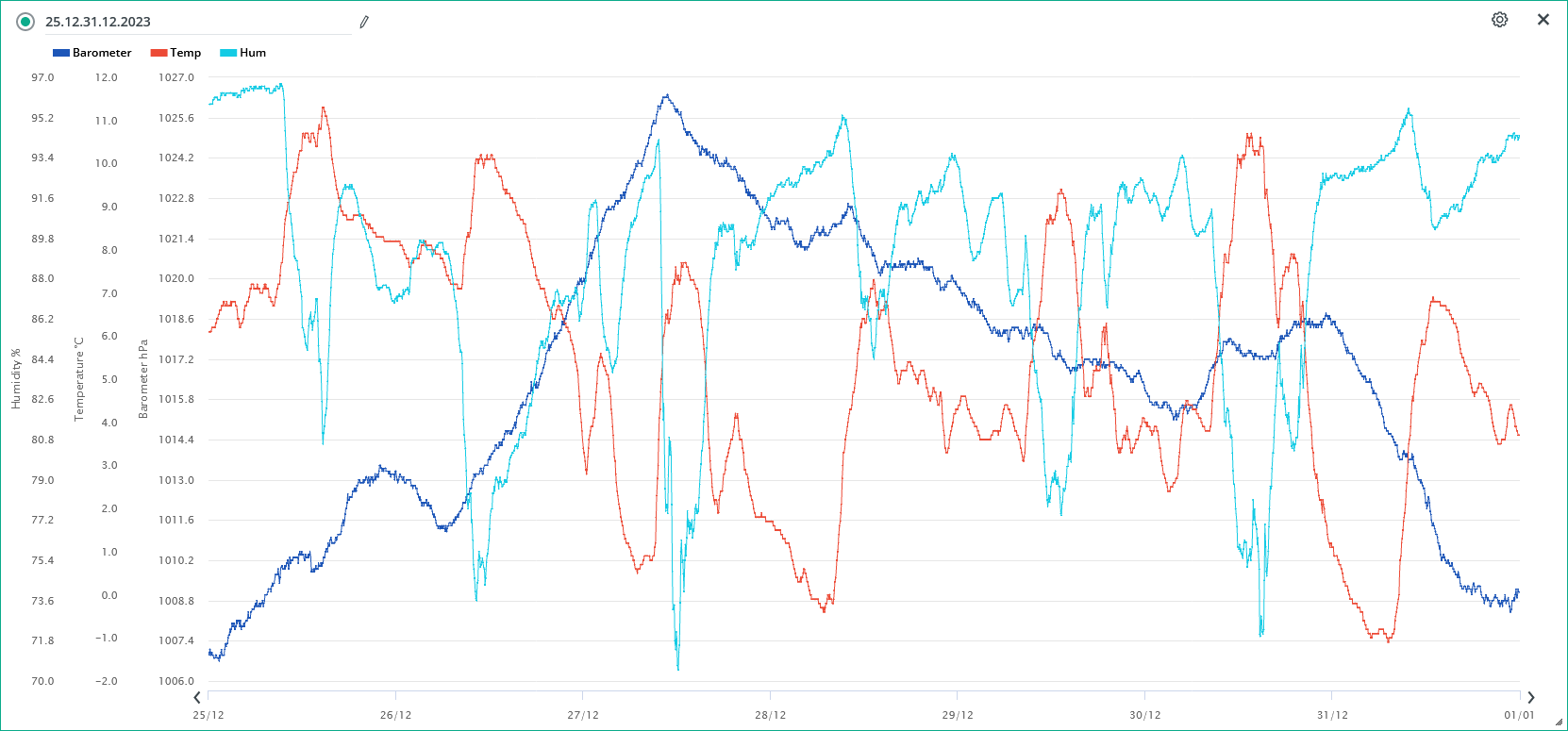 Minimální/maximální tlak 6.1.: 1006,0 hPa /1008,9 hPa