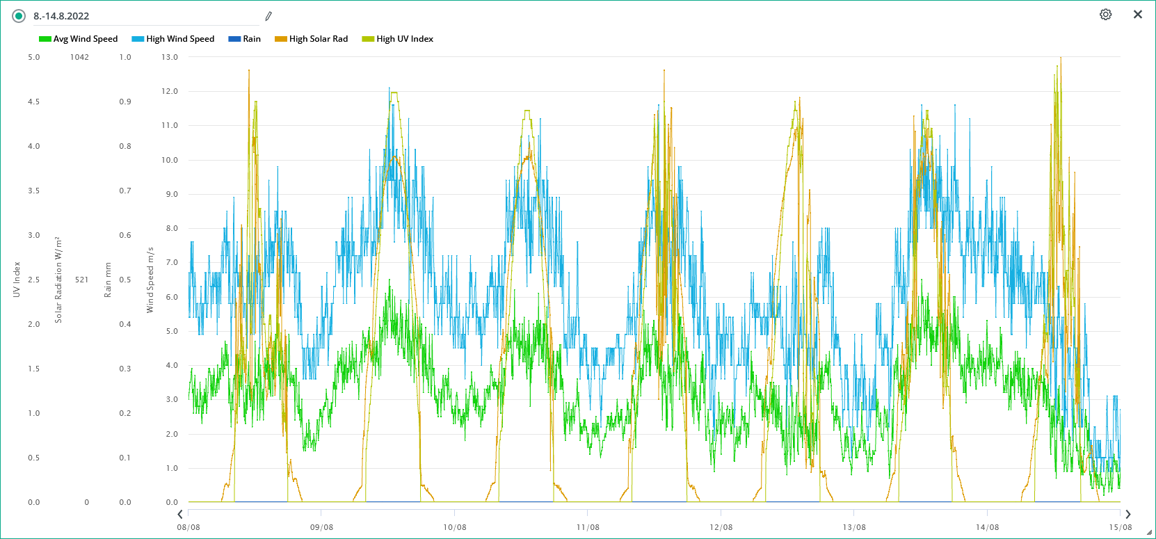 Průměrná rychlost větru 10.8./ max. rychlost.: 2,5 m/s (SV)/ 8,5 m/s (SV) 12:50