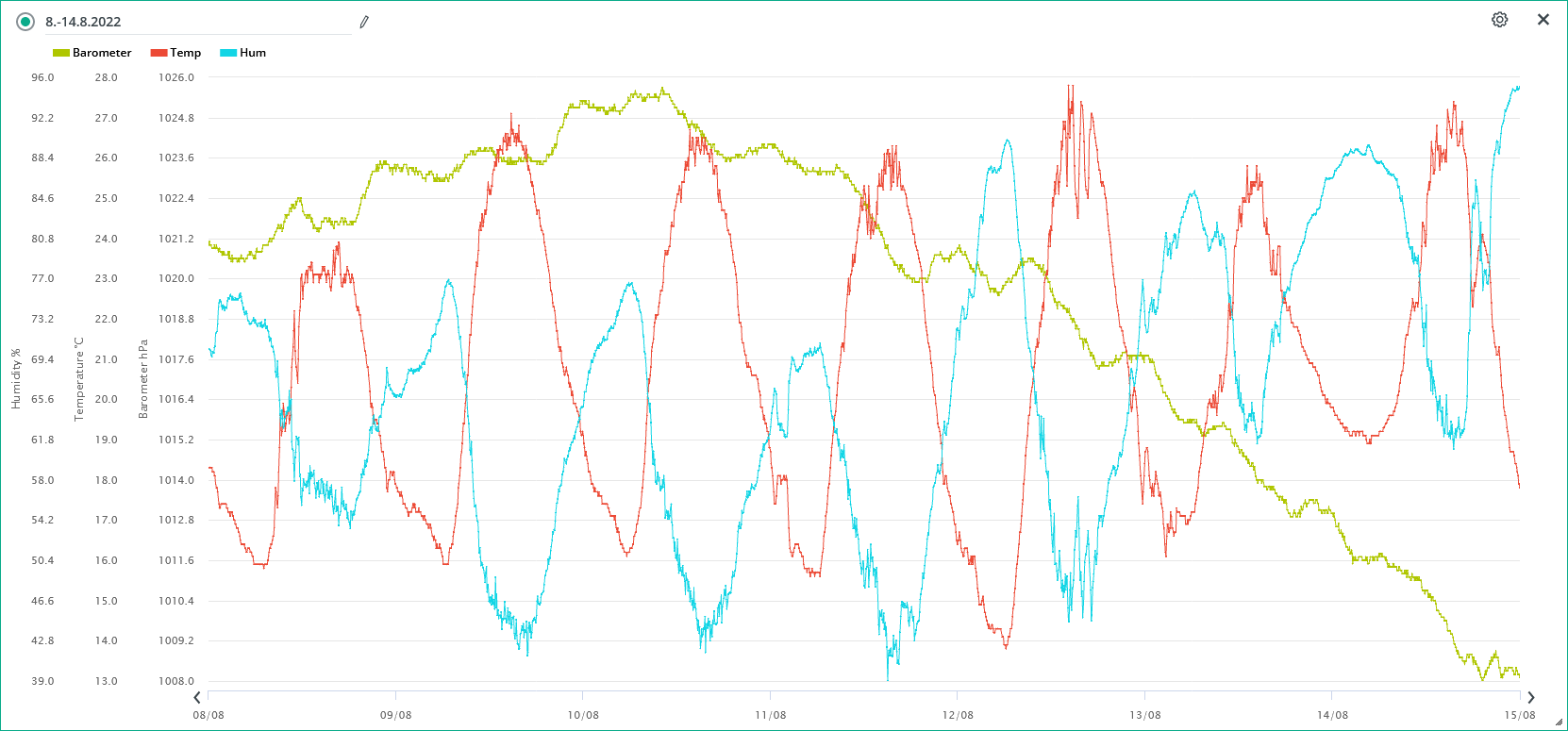 Minimální/maximální tlak 10.8.: 1023,5 hPa / 1025,7 hPa