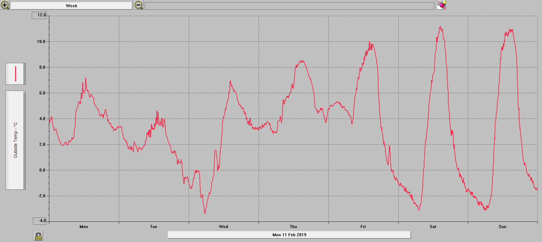 Minimální/ maximální teplota za 24h: -3,1 °C (18.; 06:42)/ 11,9 °C (18.; 14:07)