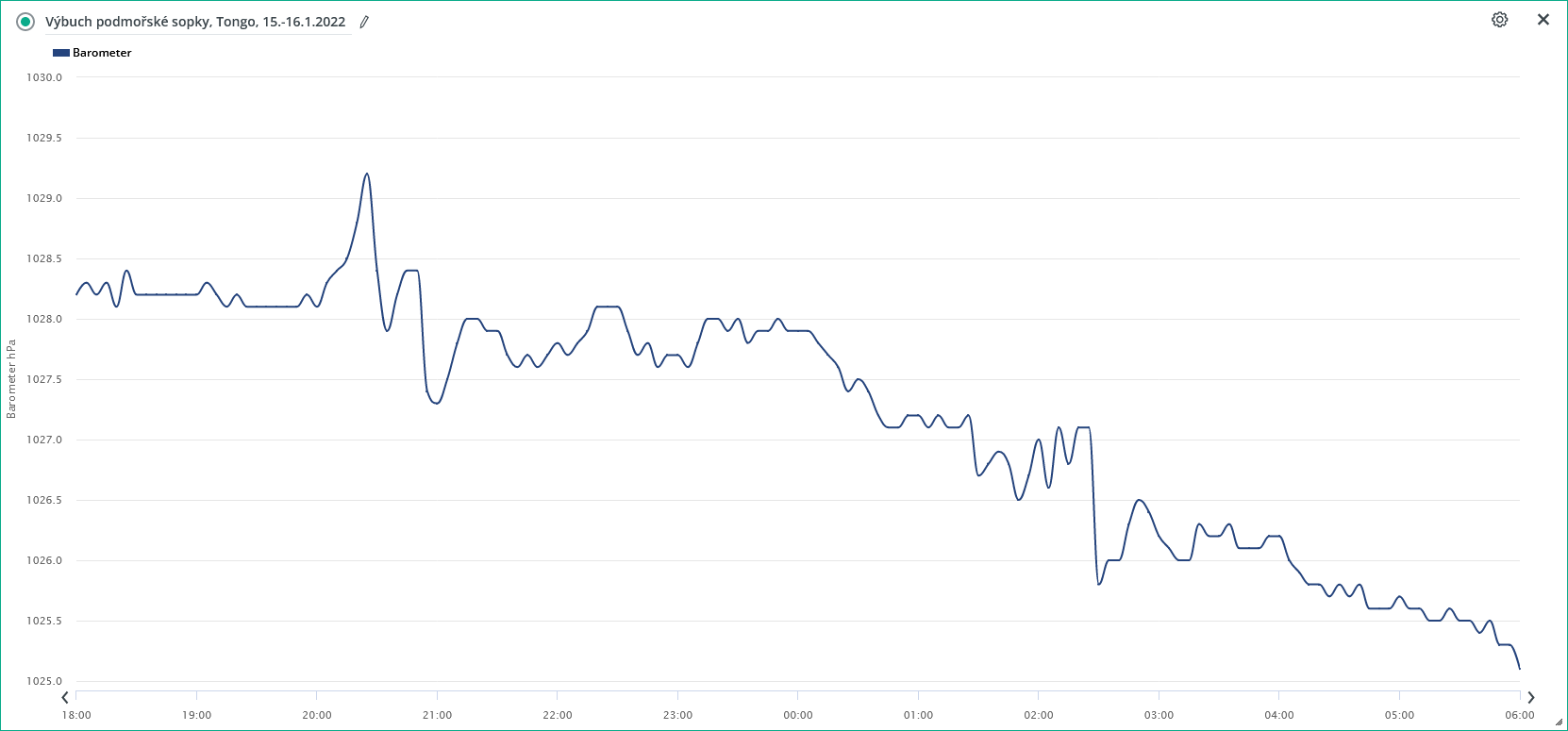 Erupce podmorske sopky. Kolem 20 hod (19-20 UTC) stanice na in-pocasi zaznamenaly tlakovou vlnu.