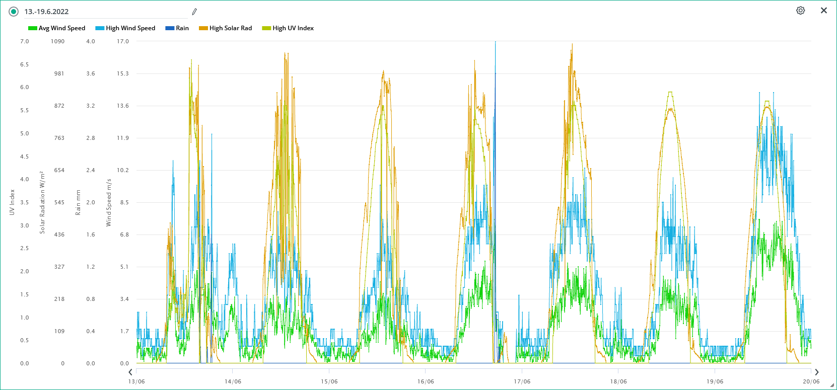 Minimální/ maximální teplota 20.6.: +13,3°C (23:55)/ +28,2°C (11:55)