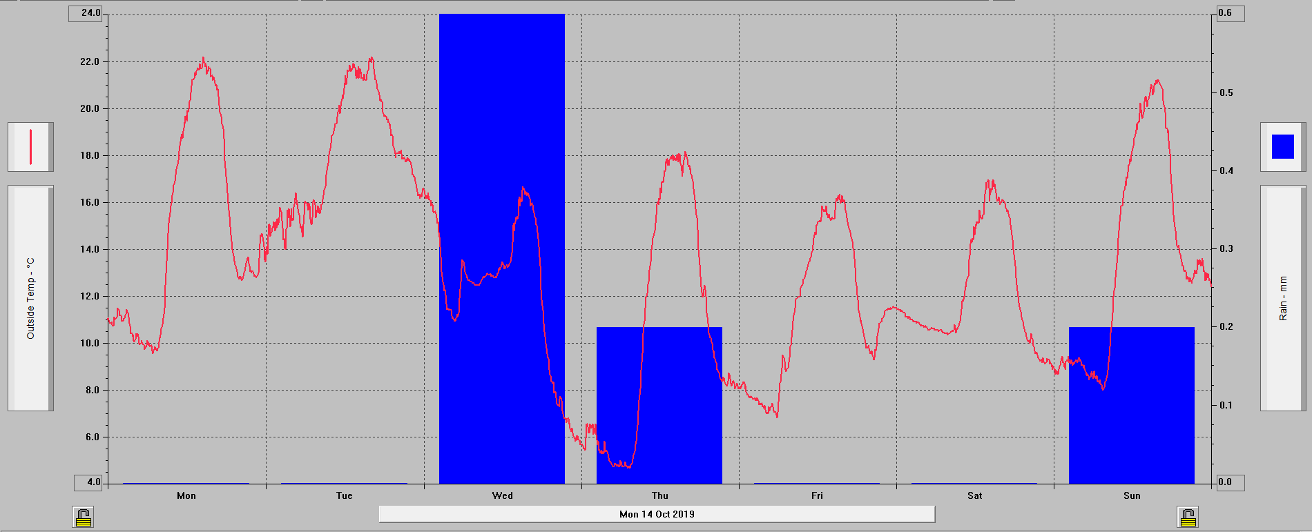 Max THSW za 24h: 26,3 °C (21.; 14:30)
