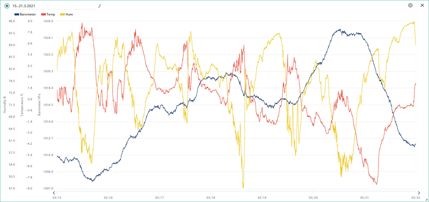 Minimální/maximální tlak 22.3.: 1012,9 hPa / 1021,1 hPa