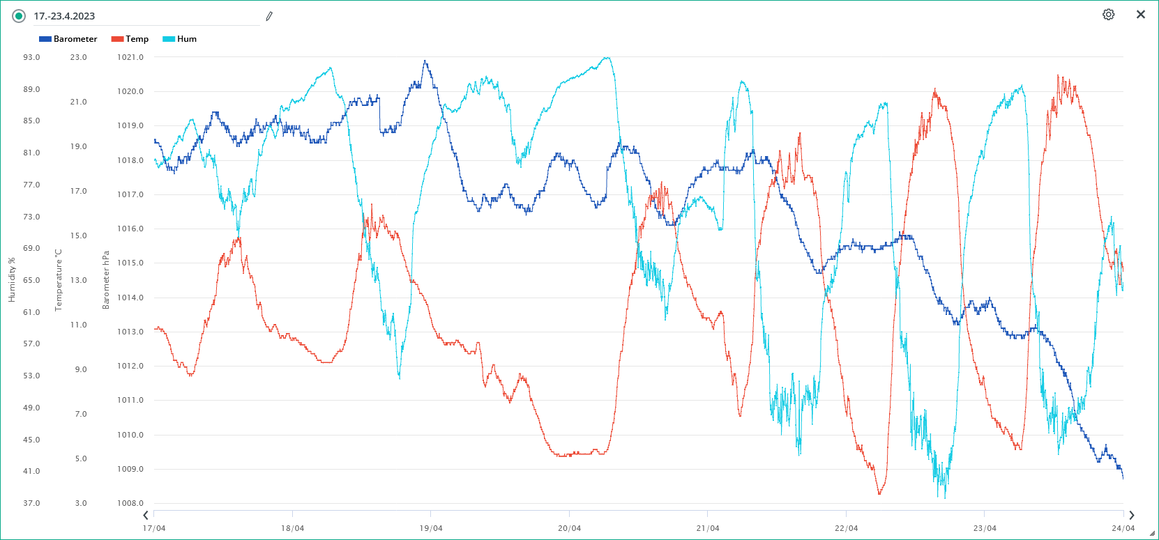 Minimální/maximální tlak 24.4.: 1004,4 hPa /1006,8 hPa