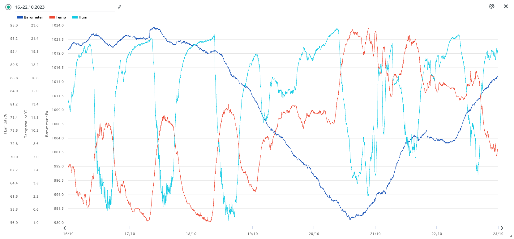 Minimální/maximální tlak 21.10.: 991,1 hPa /1004,1 hPa