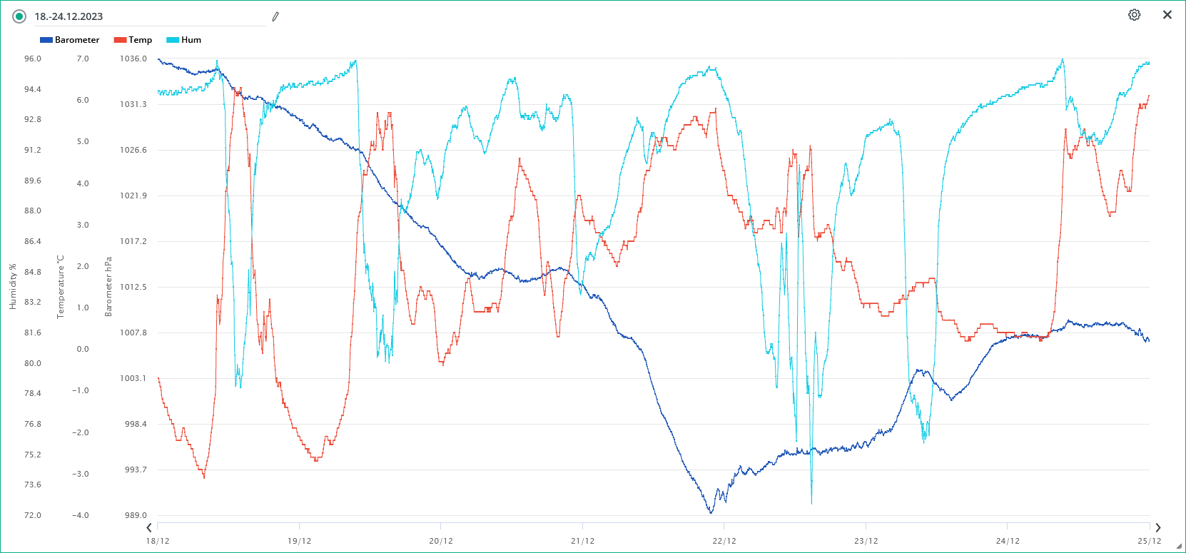 Minimální/maximální tlak 26.12.: 1008,6 hPa /1018,3 hPa