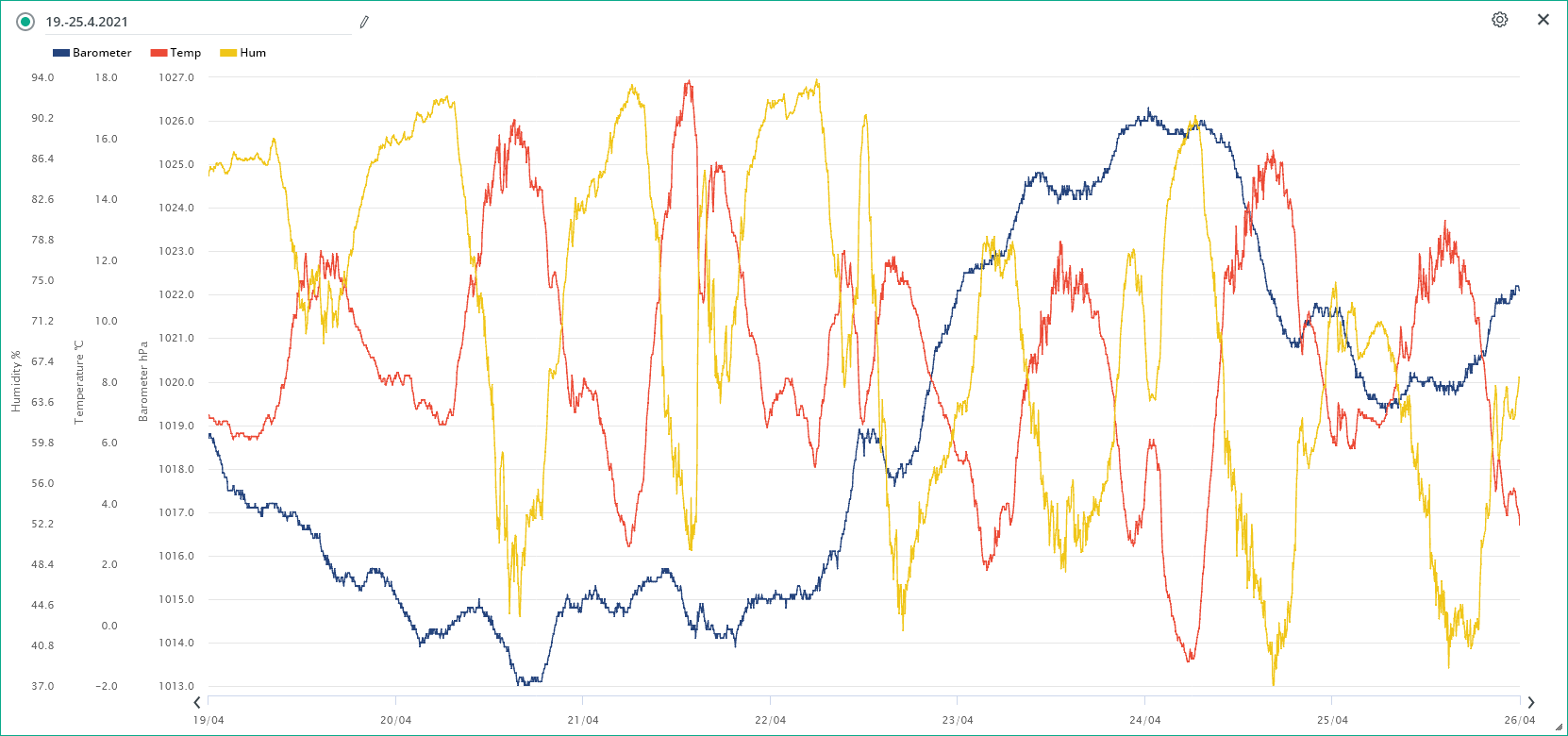Minimální/maximální tlak 25.4.: 1019,1 hPa / 1021,7 hPa