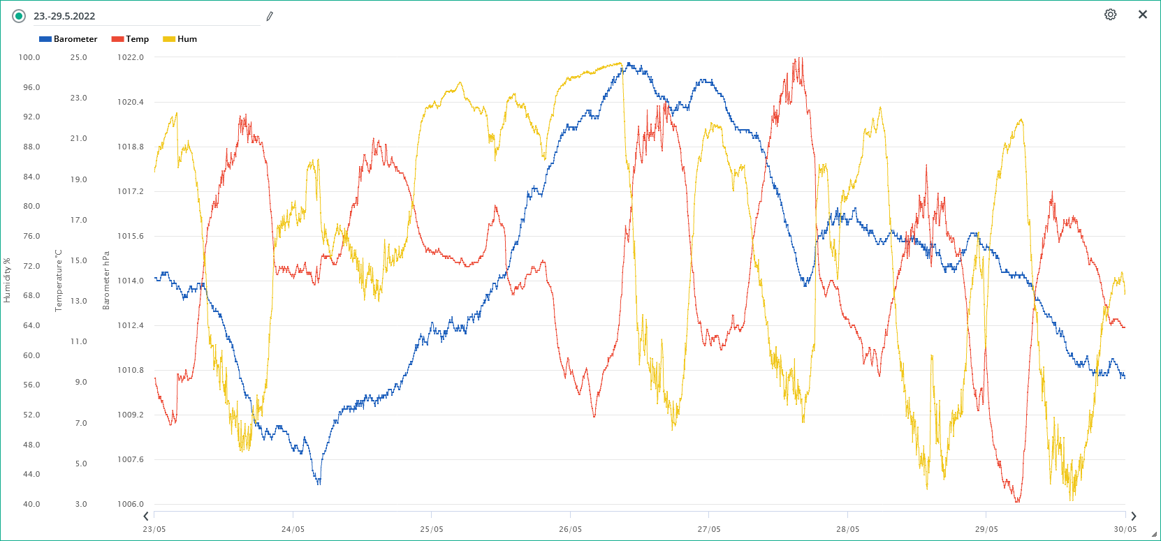 Minimální/maximální tlak 29.5.: 1010,7 hPa / 1015,0 hPa