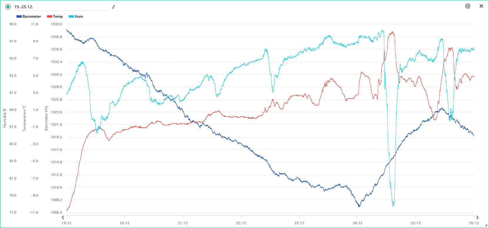 Minimální/maximální tlak 27.12.: 1016,3 hPa / 1027,8 hPa