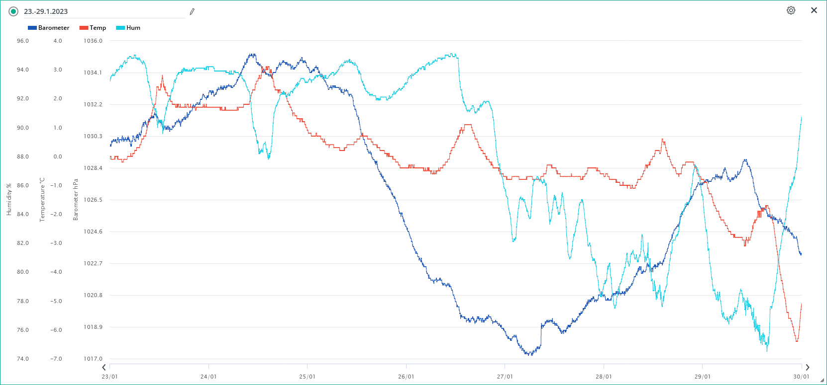 Minimální/ maximální rosný bod 29.1.:-7,7°C (07:40)/ -5,4°C (23:05)