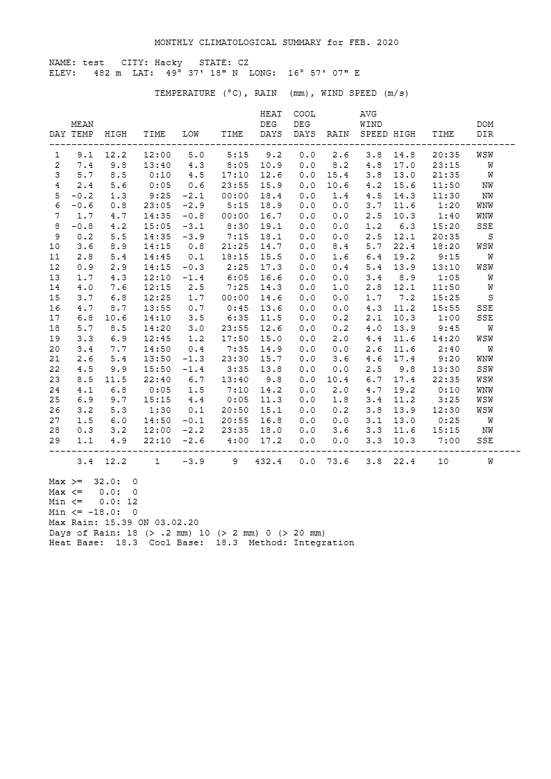 - absolutně nejnižší teplota byla dosažena 6.2. - 4,8°C ve 2:34 SEČ