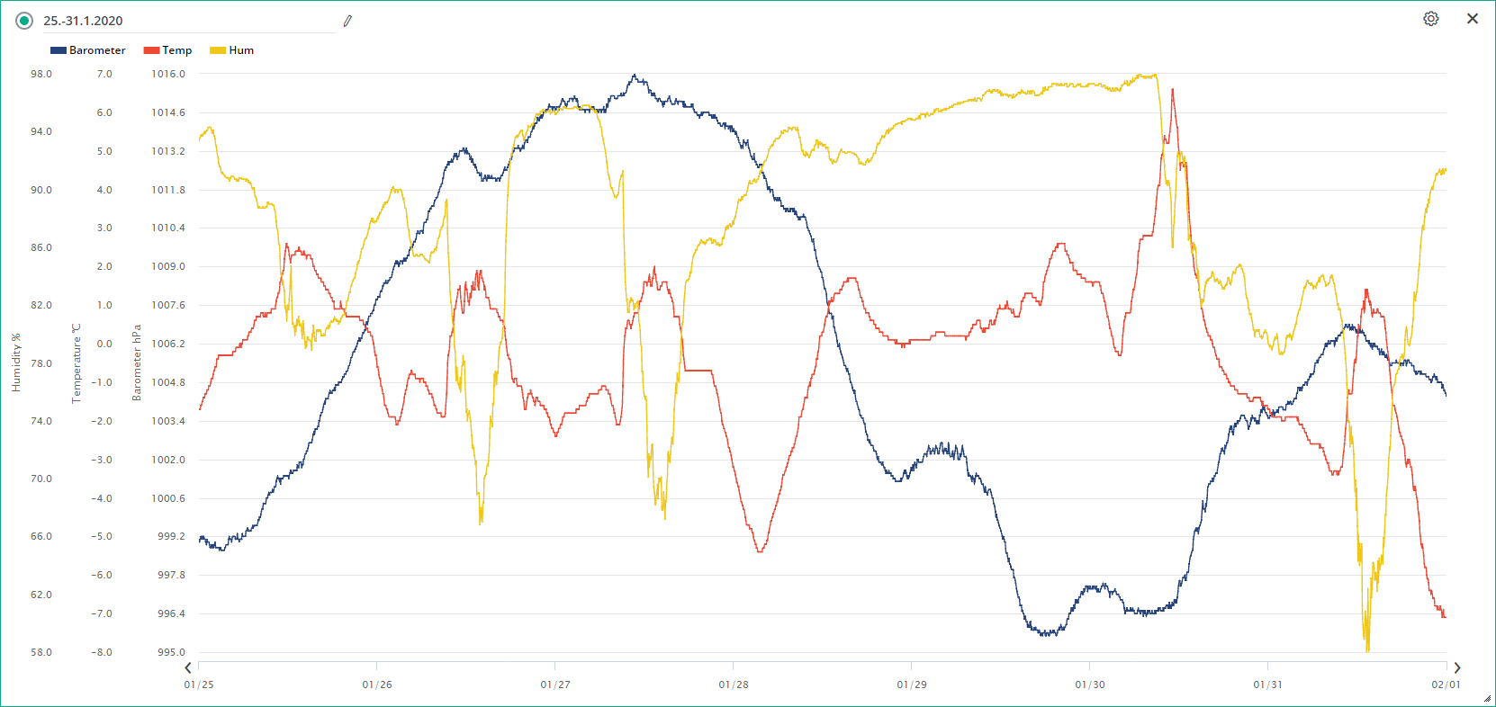 Maximální tlak za 24h: 1006,3 hPa (31.1.; 18:55)
