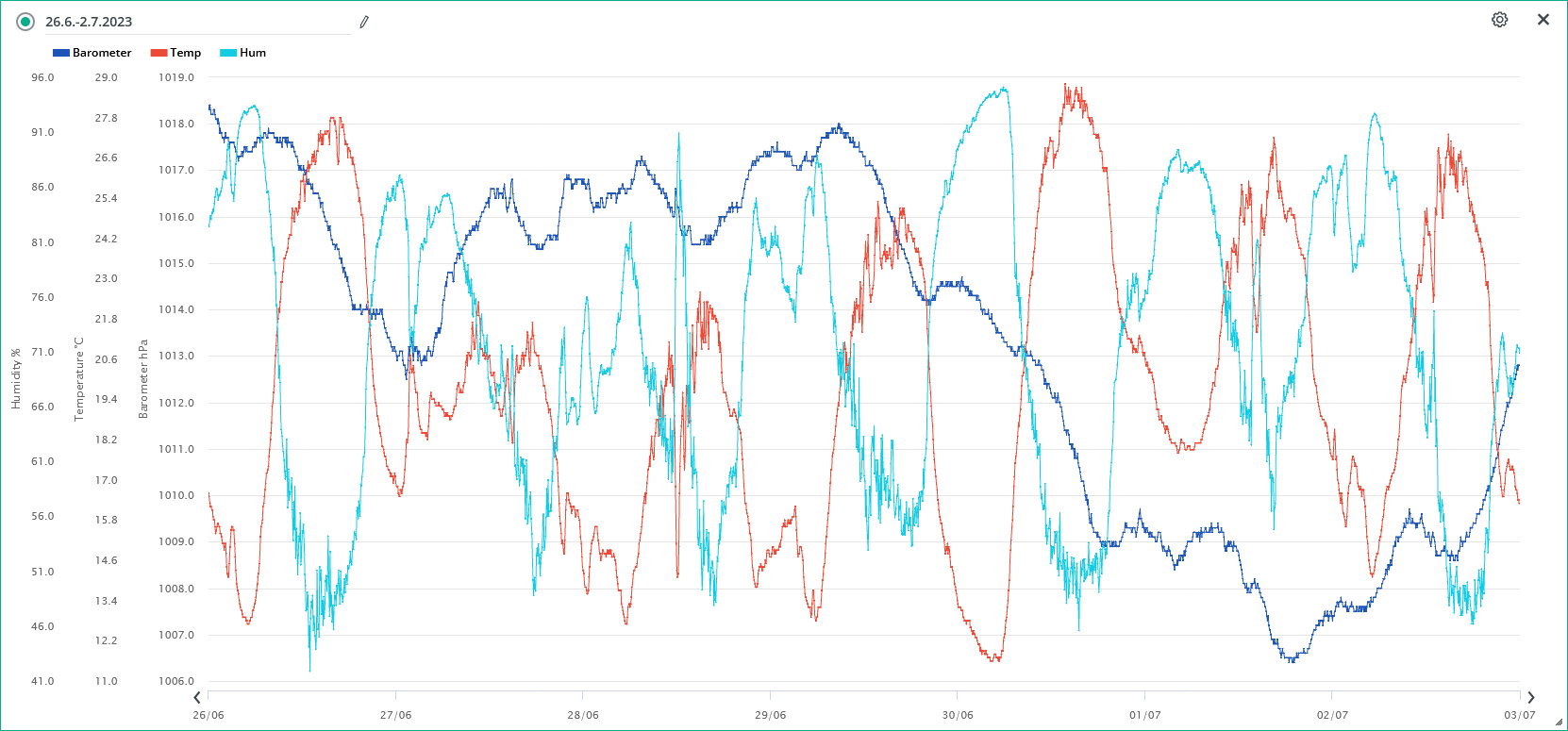 Minimální/ maximální teplota 2.7.: +15,3°C (23:40)/ +24,9°C (14:55)
