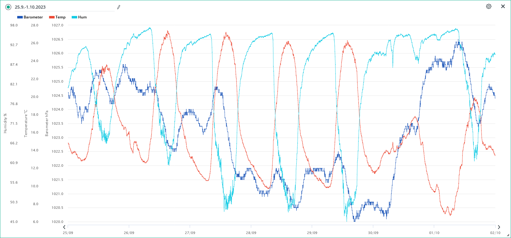 Minimální tlak vzduchu přepočtený na hladinu moře: 1023,0 hPa (30.9.; 16:40)