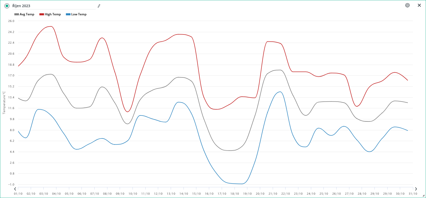 - nejchladnějším dnem byl 18.10. s průměrnou denní teplotou + 2,73°C