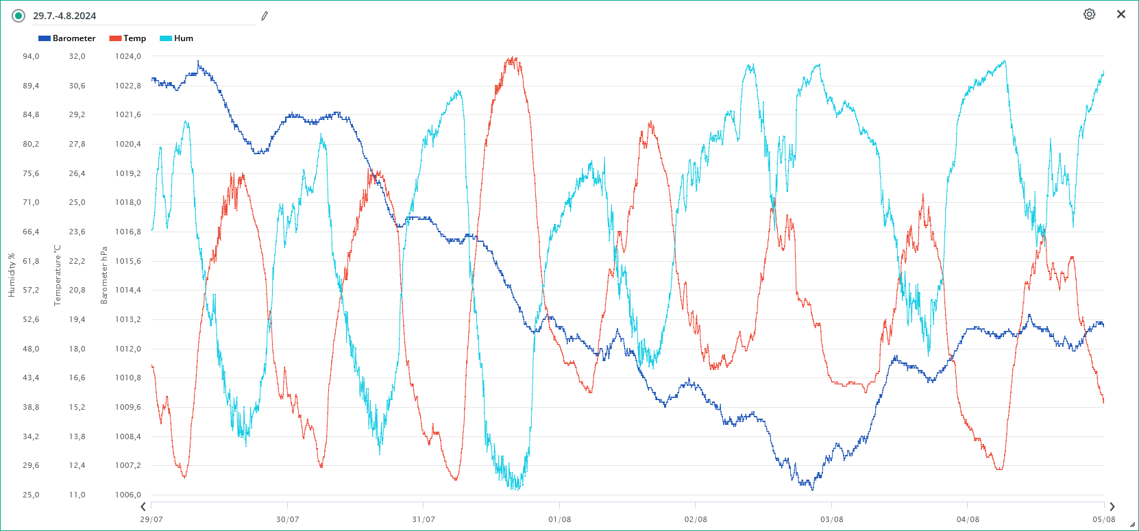 Maximální tlak vzduchu přepočtený na hladinu moře za 24h: 1013,9 hPa (31.7.; 16:40)