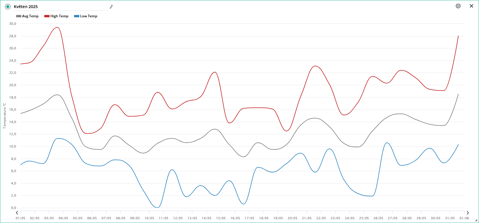 - nejchladnějším dnem byl 15.5. s průměrnou denní teplotou + 4,25°C