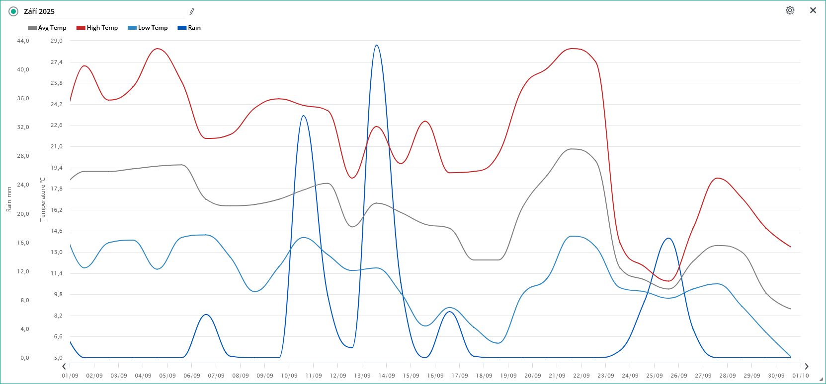 - nejchladnějším dnem byl 29.9. s průměrnou denní teplotou + 5,98°C